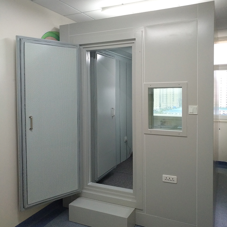 隔音房采用全封闭组装式结构,它是将噪声源控制在一个较小的空间里面割断噪声往外传播的一种控制措施。由于每种声源特性、控制要求、使用环境不一样,因此往往它需要根据具体情况设计加工。组装时隔音房的隔声板、隔声门、隔声观察窗、框架等采用模、通用化使用,具有拆装方便快捷、便于维修操作,降低噪音量10-40db(A)可选。因此可根据用户不同的要求组装从而降低成本。另外,隔音房既可隔离设备的高噪音,又可作为高噪音车间的控制室,减少噪声对人体的危害。同时配备有通风降温、散热装置和进、排风消音器,保证设备正常工作。